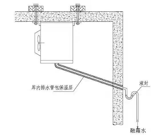 5、在庫外的連接管必須加裝排水存水彎,管內保證一定的液封,以防止大量的庫外熱空氣進入冷庫內;